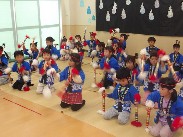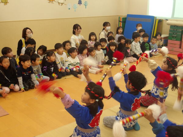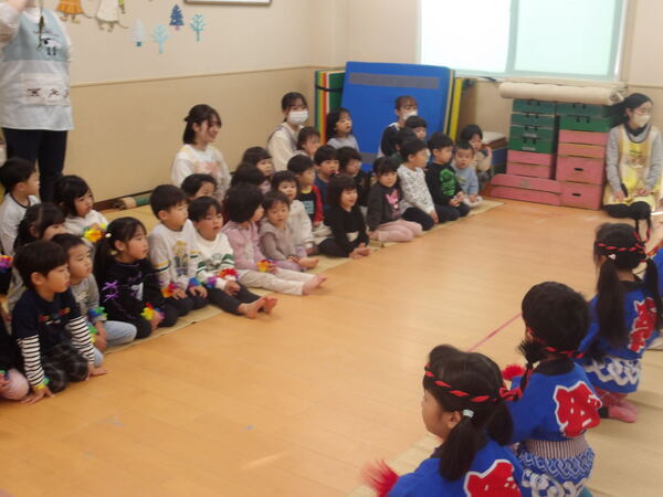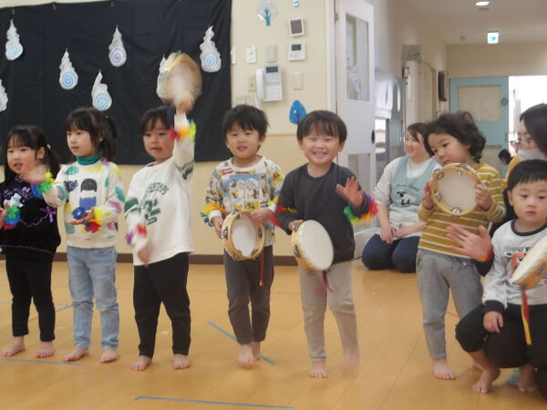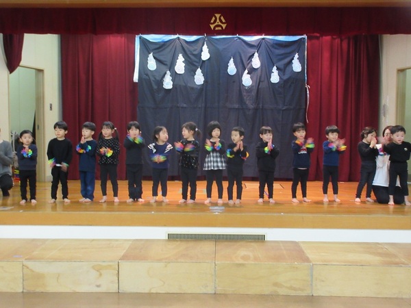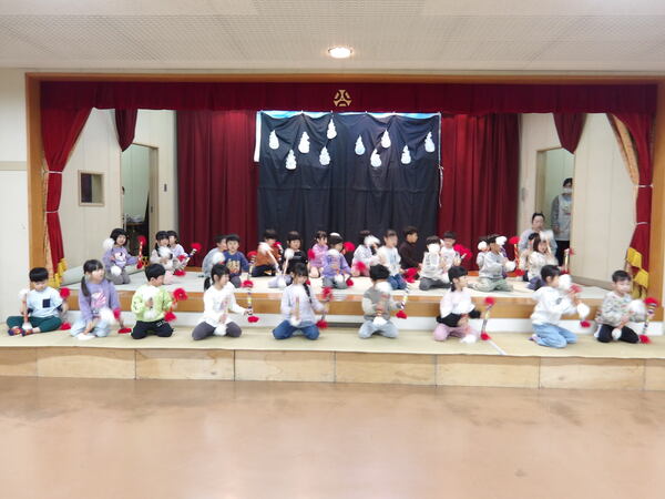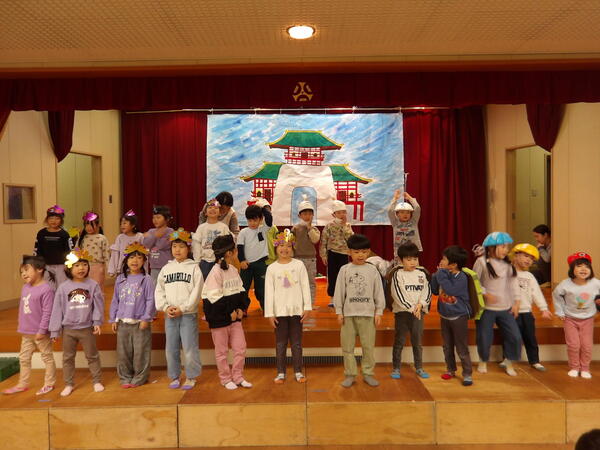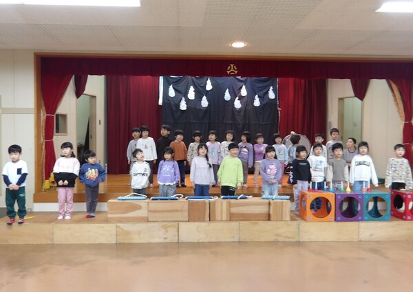 わくわく発表会のリハーサルしたよ!(つき・そら組)3 そら組さんも銭太鼓から劇までたくさんの発表をがんばりましたよ♪この日の給食とおやつは、給食先生からのエールで「わくわく発表会がんばれ🎵」献立でした。げきのつき組のようかい・ランチと、そら組のうらしまたろうのカメ・スコーンが出ましたよ。発表会本番ではご家族の前で、もっと張り切って楽しく発表すると思いますので、どうぞご期待ください! 2025-12-17