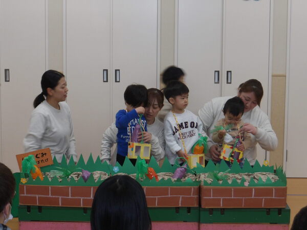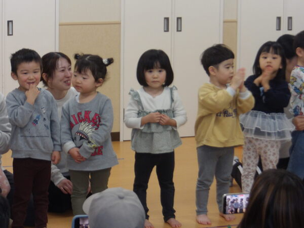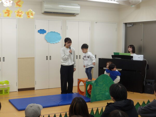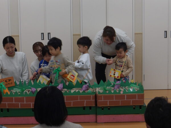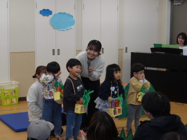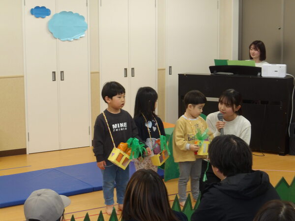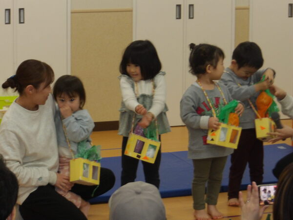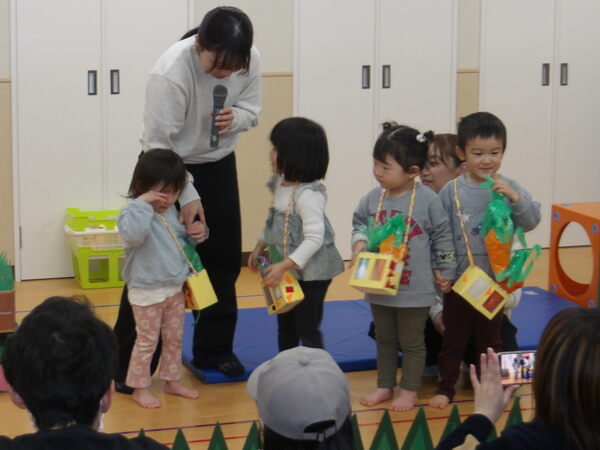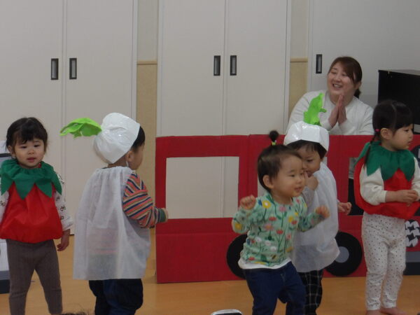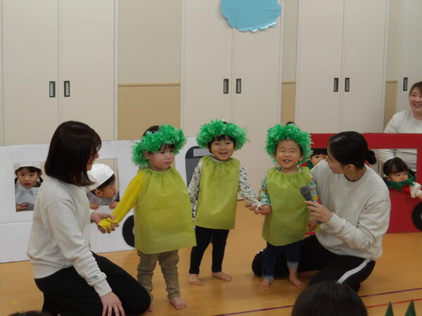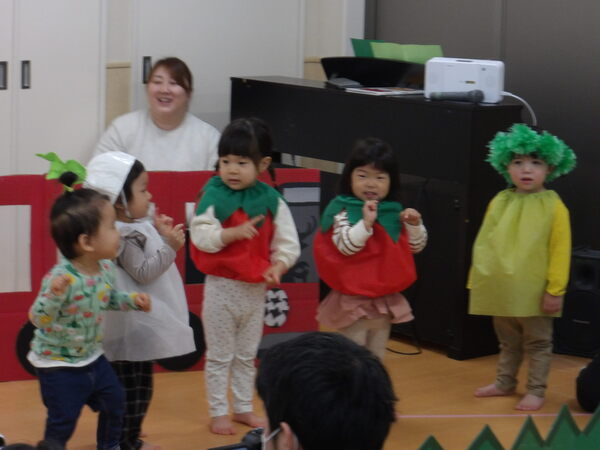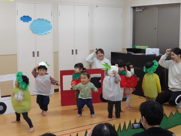わくわく発表会したよ!(にじ組)1 にじ組さんは表現あそびで「にじ組の野菜畑」をしましたよ🎵グループで登場して自己紹介をして、山をジャンプ!して野菜畑へ、好きな野菜をとってゲットしました。 2026-01-17
