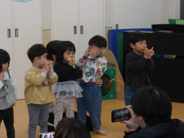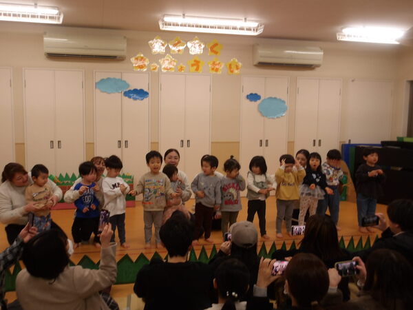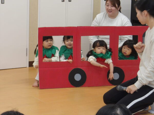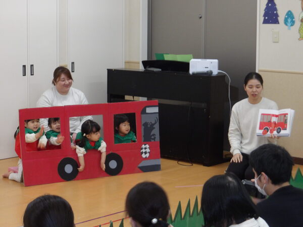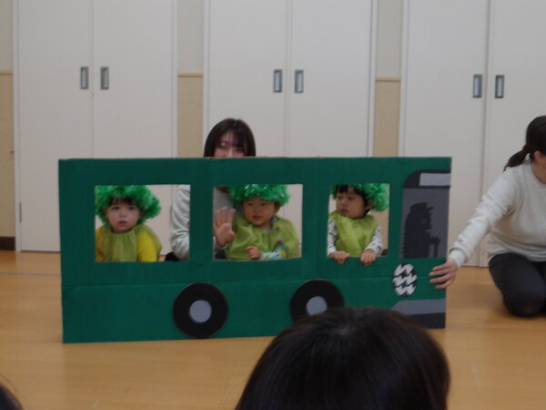 わくわく発表会したよ!(ほし組)2 最後にみんなでバスからおりて、手遊びで「やさい」の歌を歌って、しぐさがかわいらしかったですね🎵保護者の皆様、ご参観いただき、ありがとうございました。 2026-01-17
