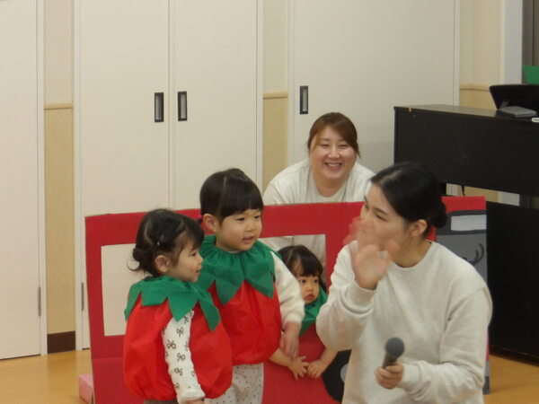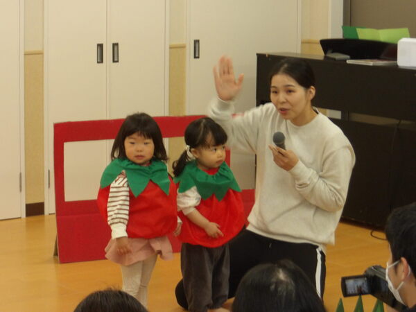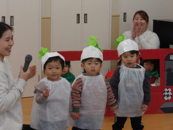 わくわく発表会したよ!(ほし組)1 ほし組さんは表現あそびで「野菜になってバスにのろう!」をしましたよ🎵かわいい赤いやさいグループさん、白いやさいグループさん、緑のやさいグループさんが上手に自己紹介をして、次々とバスにのりこみましたね。 2026-01-17