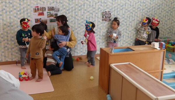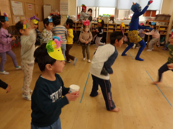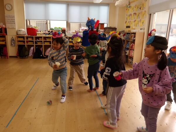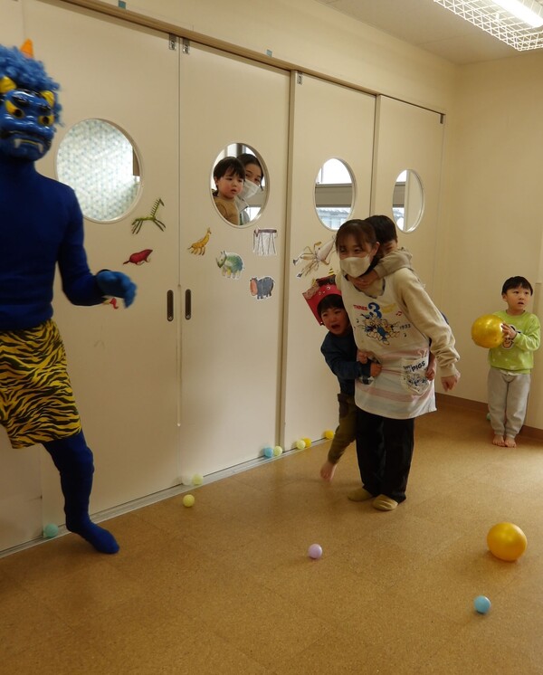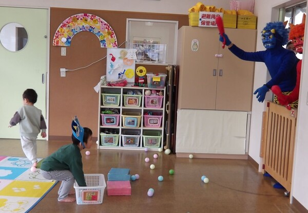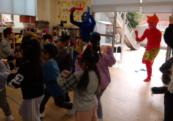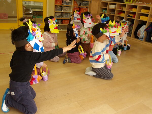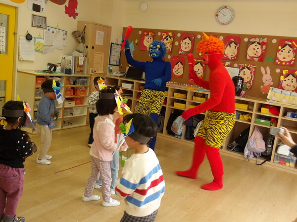 にじ組さんは二手に分かれて鬼とふれあったり?やっつけたりしましたよ。