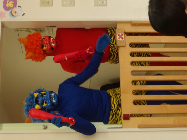 後半は、ほし組さんの誕生児親子も加わって、職員の出し物で切り絵と「三匹のくま」の劇を見て盛り上がりましたよ。最後に、ハッピバースデーの歌とケーキのろうそくの火を消して和やかに終わりました。