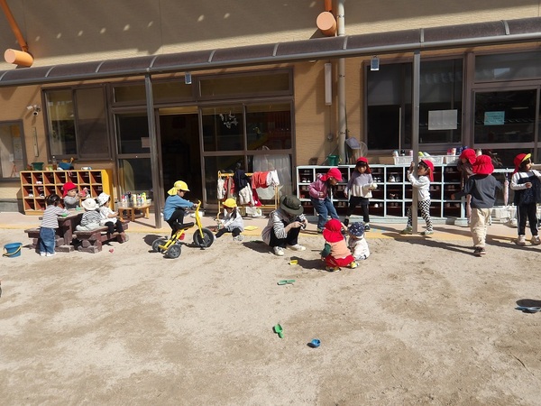 とてもさわやかな天気でしたので、消防車の見学後は園庭でにぎやかに遊びましたよ。