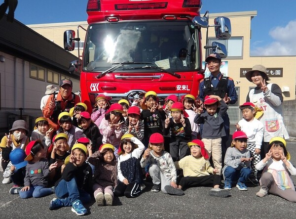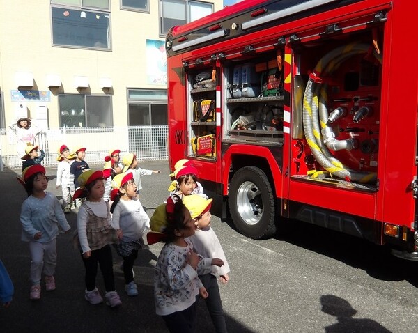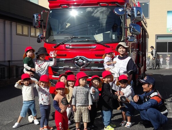 毎月避難訓練を行っていますが、年1回は消防署の方が来園して、訓練の様子を見ていただいてご指導くださいます。