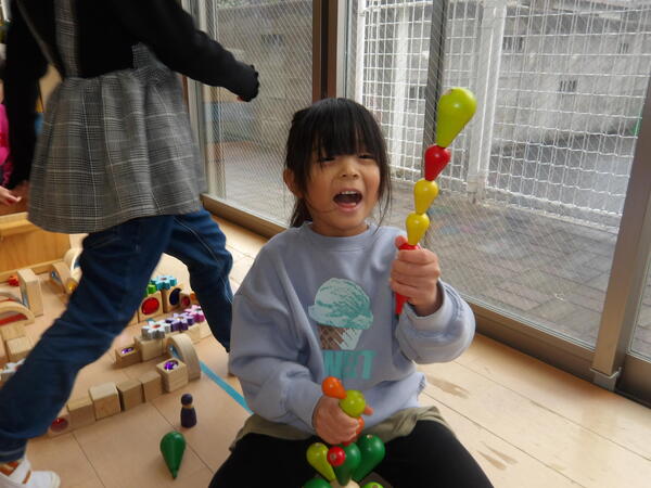 木のおもちゃで遊んだよ!(そら組)1 安来在住のTon-Tonさんがいろんな木のおもちゃをもってきてくれました。「木は生きているよ」と紙芝居でお話を聞いた後で、思い思いに木のおもちゃにふれたりつくったりして遊びました🎵 2026-01-14