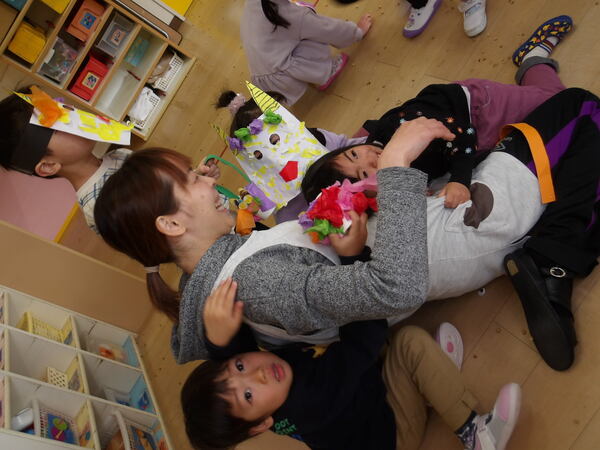 そら組のみんなで、生徒さんが考えて準備してこられた保育を楽しみましたよ。