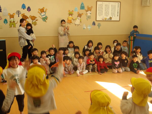 安来高校生と遊んだよ!(保育実習)1 安来高校の生徒さんが、保育実習で来てくれました。そら組のみんなで、生徒さんが考えて準備してこられた保育を楽しみましたよ。クリスマスにちなんだ手遊びや絵本にわくわく、ピアノも上手で歌やおどりも楽しかったですね🎵 2025-12-11