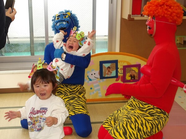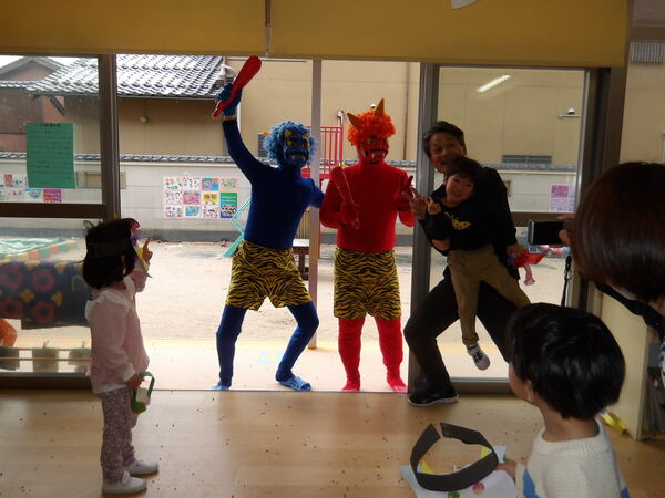 今年もやすぎこども園に赤鬼と青鬼が来てくれましたよ。