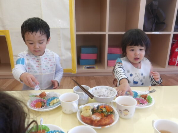 にじ組さんの部屋でも遊んで、一緒に給食もいただきましたよ♫