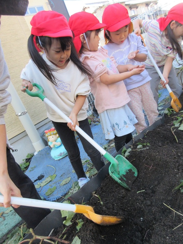 (そら組さんが掘ってくれたさつまいもを前もって畑に掘りやすいように埋めなおしたものです)