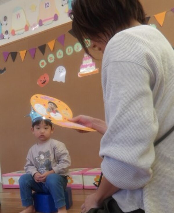 こちらは、そら組さんとつき組さん、お母さんからカードをよんでもらって嬉しそうでしたね。