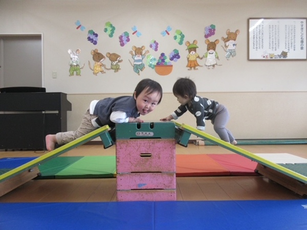 ほし組さんもかけっこの練習を廊下で頑張ってます!
